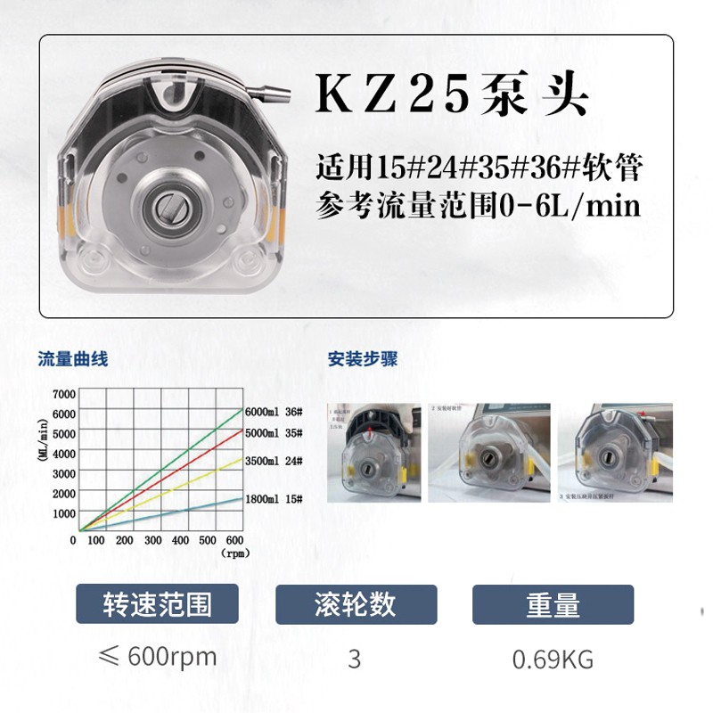 KZ25泵頭,適用15#24#35#36#軟管,單通道最大流量6000mL/min;